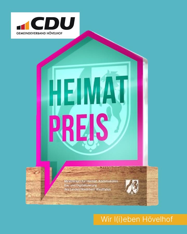 Ehrenamt wirkt. Und Hövelhof sagt Danke! 💛Auch in diesem Jahr zeichnet die Sennegemeinde Hövelhof wieder Menschen aus, die unsere Gemeinde mit Herz, Zeit und Engagement stärker machen. Der Heimatpreis 2026 geht in die nächste Runde!Ob im Verein, im Brauchtum, im Einsatz für unsere Natur oder für das Miteinander in der Gemeinde ? überall dort, wo Menschen Verantwortung übernehmen und Gemeinschaft leben, entsteht echte Heimat. Genau dieses Engagement soll sichtbar gemacht und gewürdigt werden.Bis zum 15. April können engagierte Hövelhoferinnen und Hövelhofer vorgeschlagen werden ? egal ob Einzelpersonen, Vereine oder Institutionen.Der Heimatpreis ist mit insgesamt 5.000 Euro Preisgeld für bis zu drei Preisträger verbunden. Über die Auszeichnung entscheidet der Ausschuss für Familie, Sport und Kultur am 28. April. Die feierliche Preisverleihung ist für den Spätsommer 2026 geplant.👉 Jetzt Vorschläge einreichen und Menschen sichtbar machen, die Hövelhof jeden Tag ein Stück besser machen. Infos auf der hoevelhof.de#Hövelhof #Heimatpreis #Ehrenamt #Gemeinschaft #Sennegemeinde #CDUHövelhof